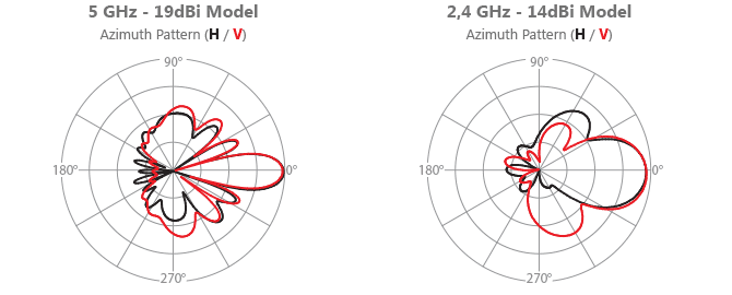 Anten performansı 5 GHz 19 dBi 2.4 GHz 14 dBi